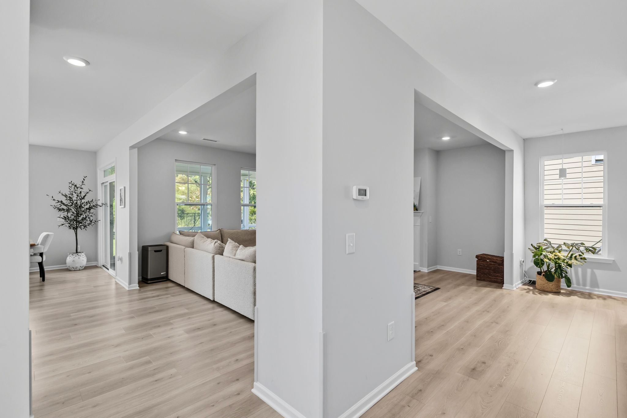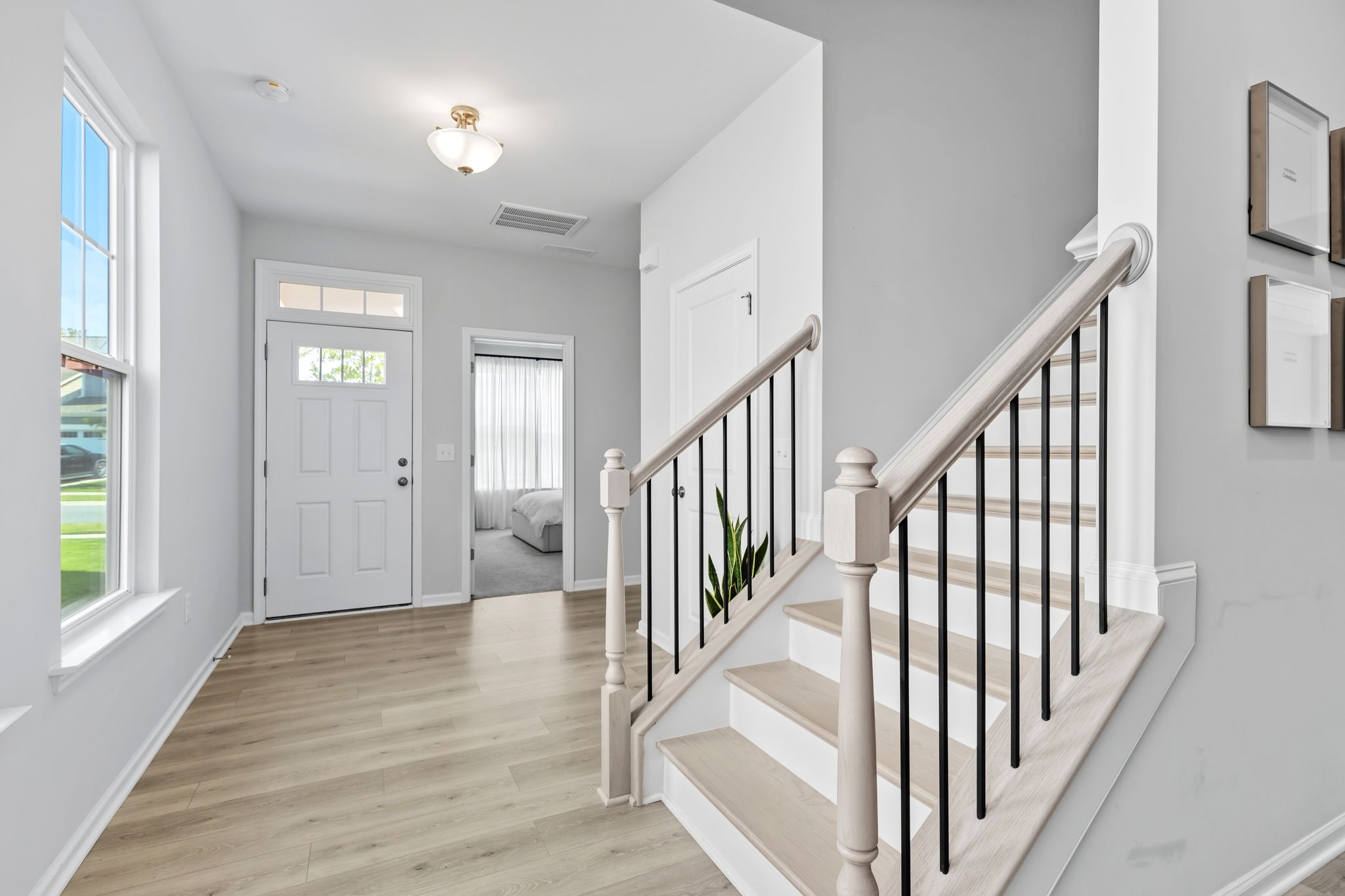 Step inside to a bright, open-concept main floor with engineered hardwoods, crown molding, and abundant natural light. The chef’s kitchen features upgraded cabinetry, quartz countertops, a spacious island, and both breakfast and formal dining areas. The living room, complete with a gas fireplace, flows seamlessly from the kitchen and is perfect for entertaining. A first-floor guest suite with private full bath doubles as an ideal home office.