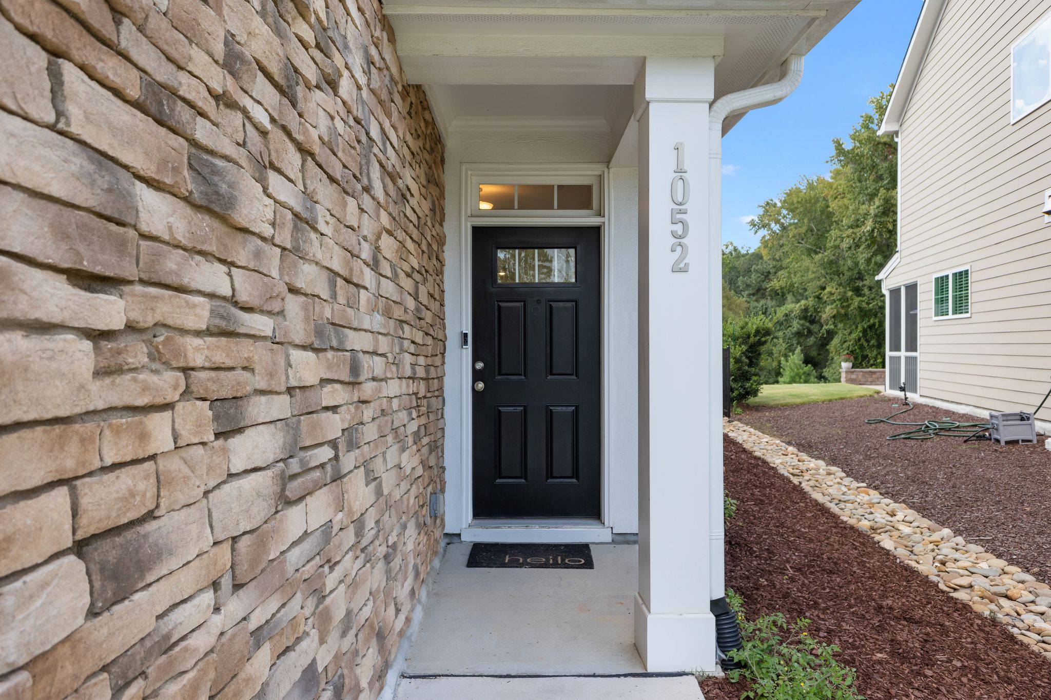 Enjoy outdoor living on the large screened porch and patio overlooking a private, wooded backdrop.