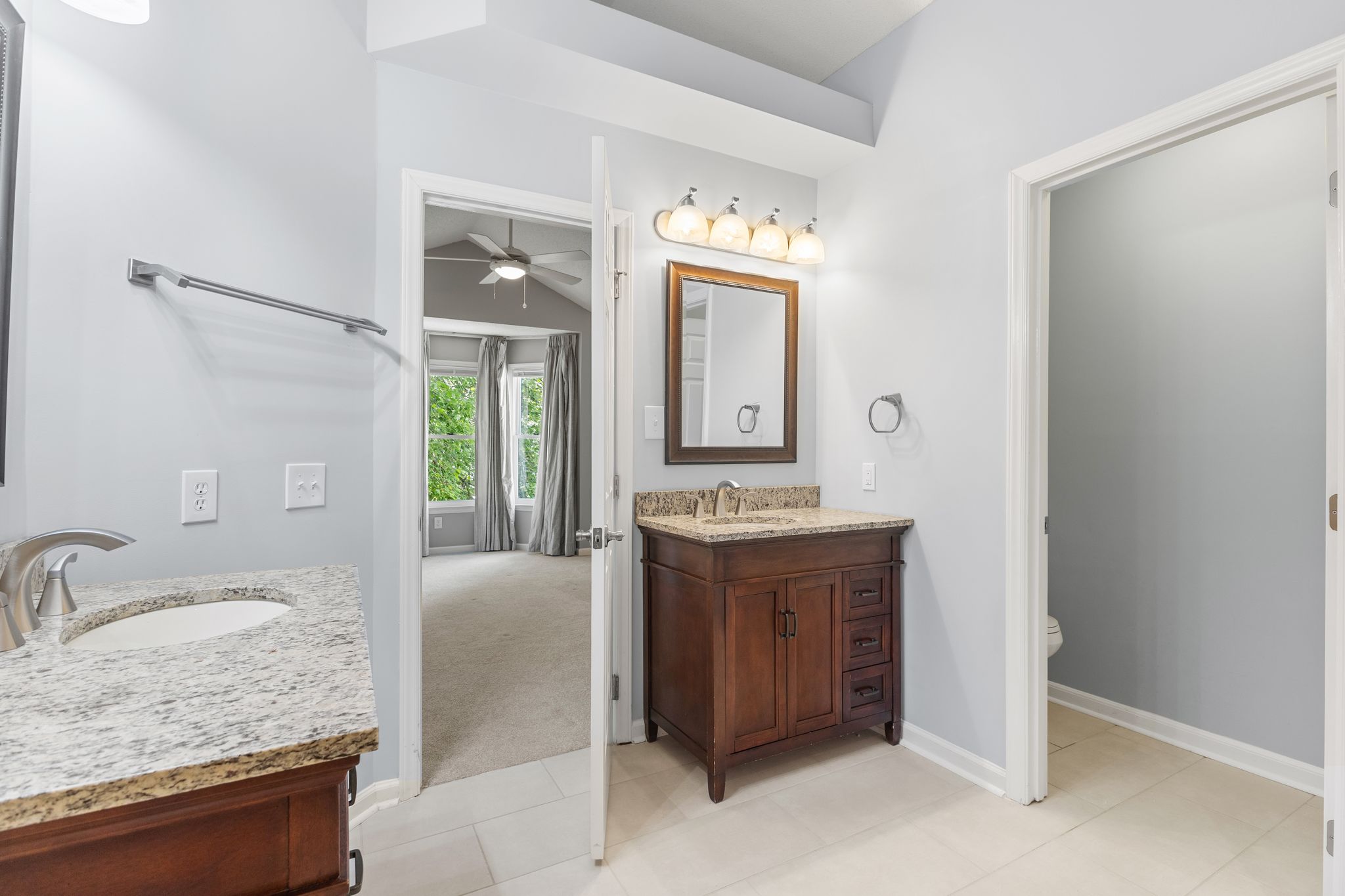 Upstairs, the owner's suite is a private retreat with a cathedral ceiling, walk-in closet, and a spa-inspired en-suite bath showcasing new tile floors, upgraded fixtures, and a luxurious marble walk-in shower with dual shower heads. A spacious guest bedroom and another beautifully updated full bath complete the second floor.