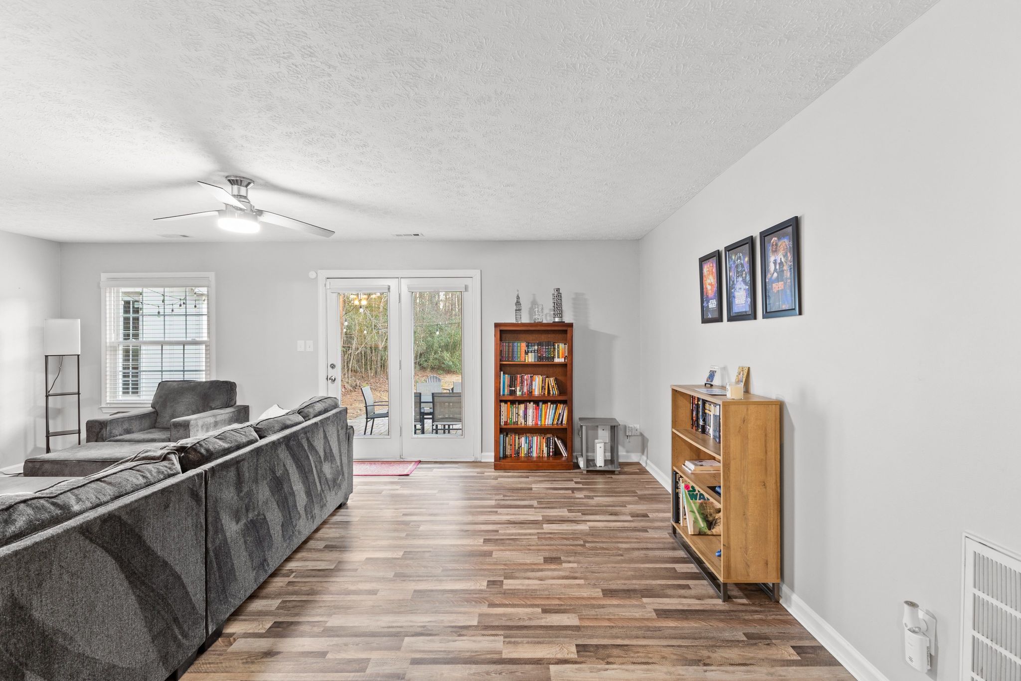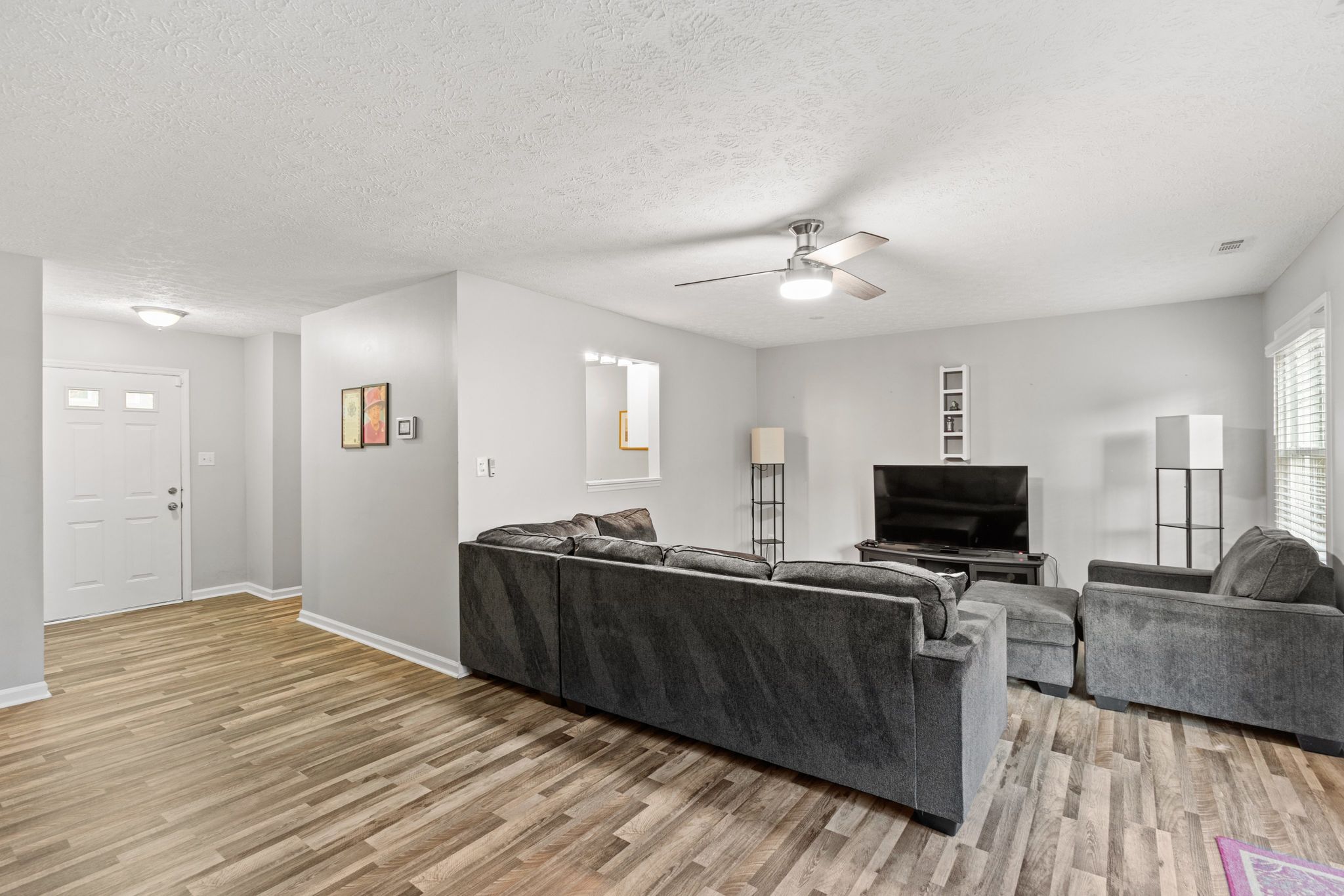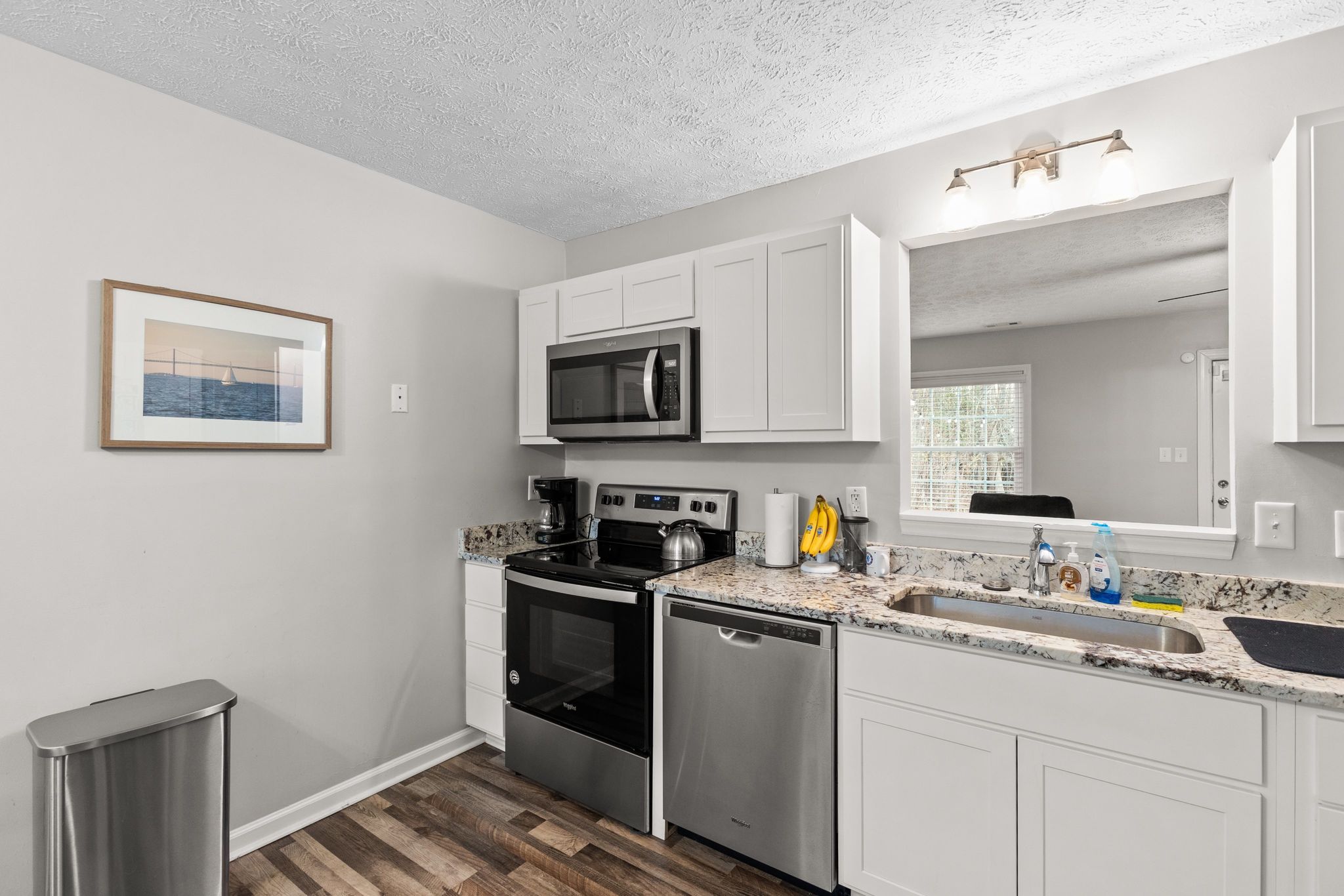 Step inside to the updated kitchen featuring granite countertops, custom cabinetry, a built-in microwave, and stainless steel appliances. Luxury vinyl plank flooring runs throughout the home, creating a seamless, low-maintenance living space.