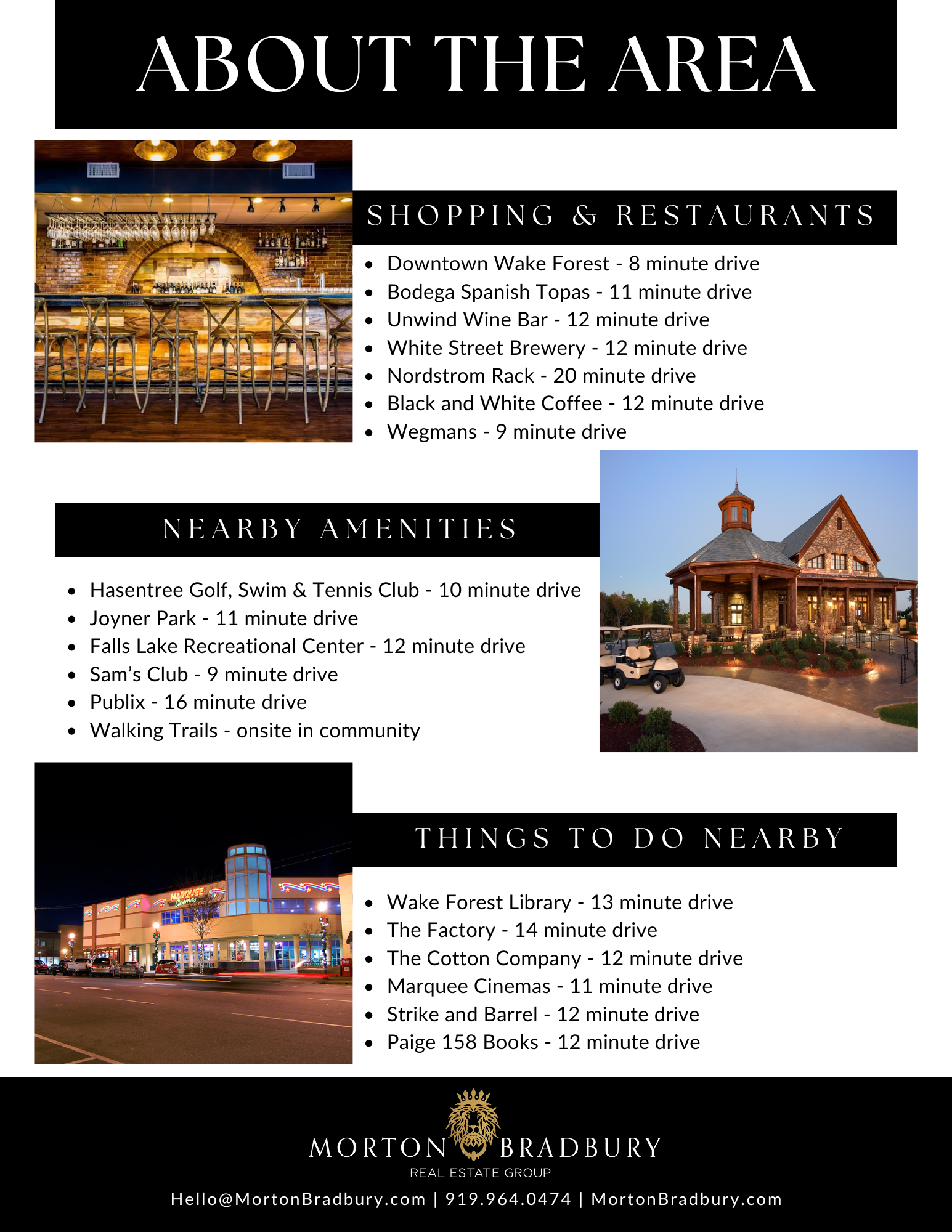 • Minutes to Downtown Wake Forest, Wakefield & Falls Lake
