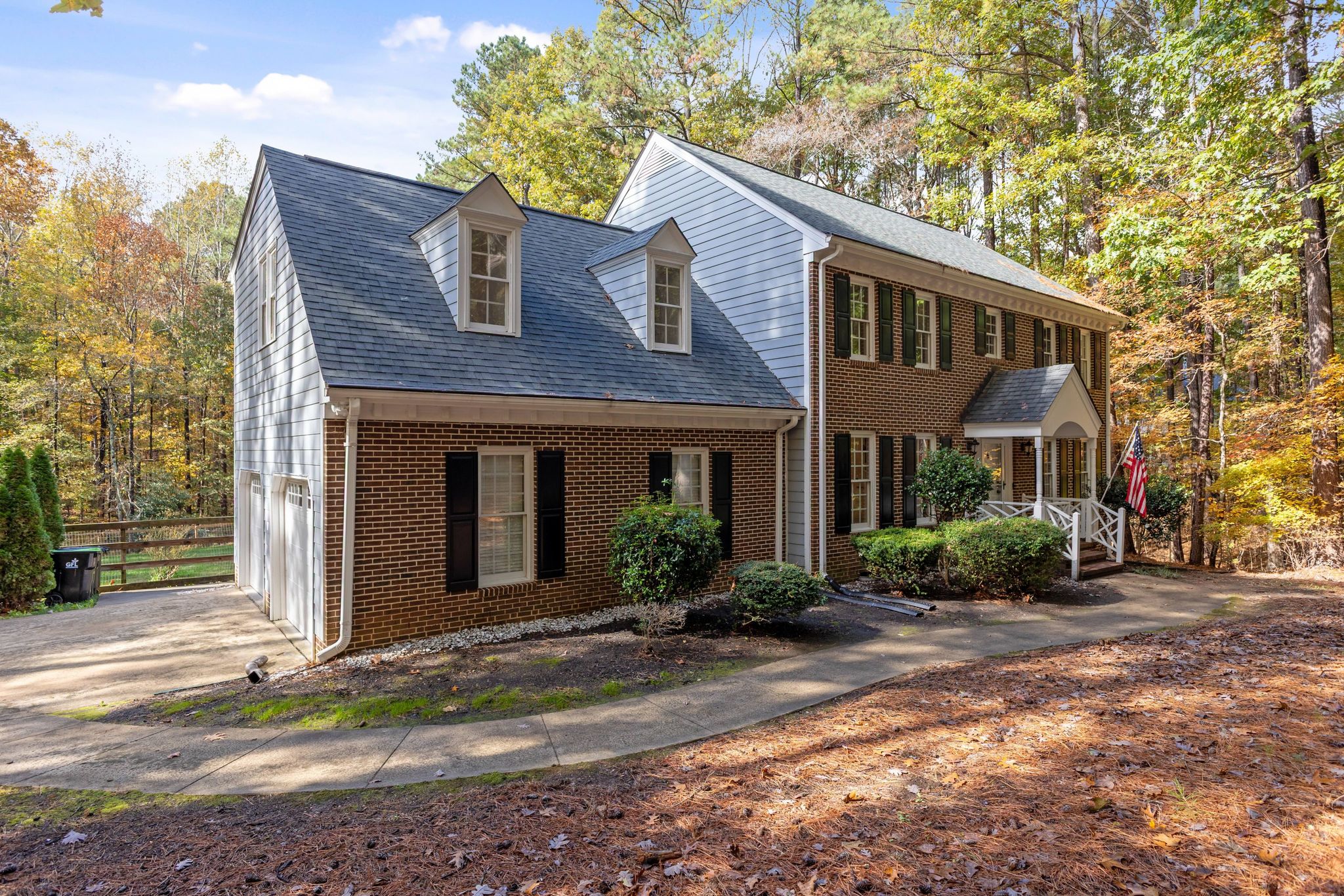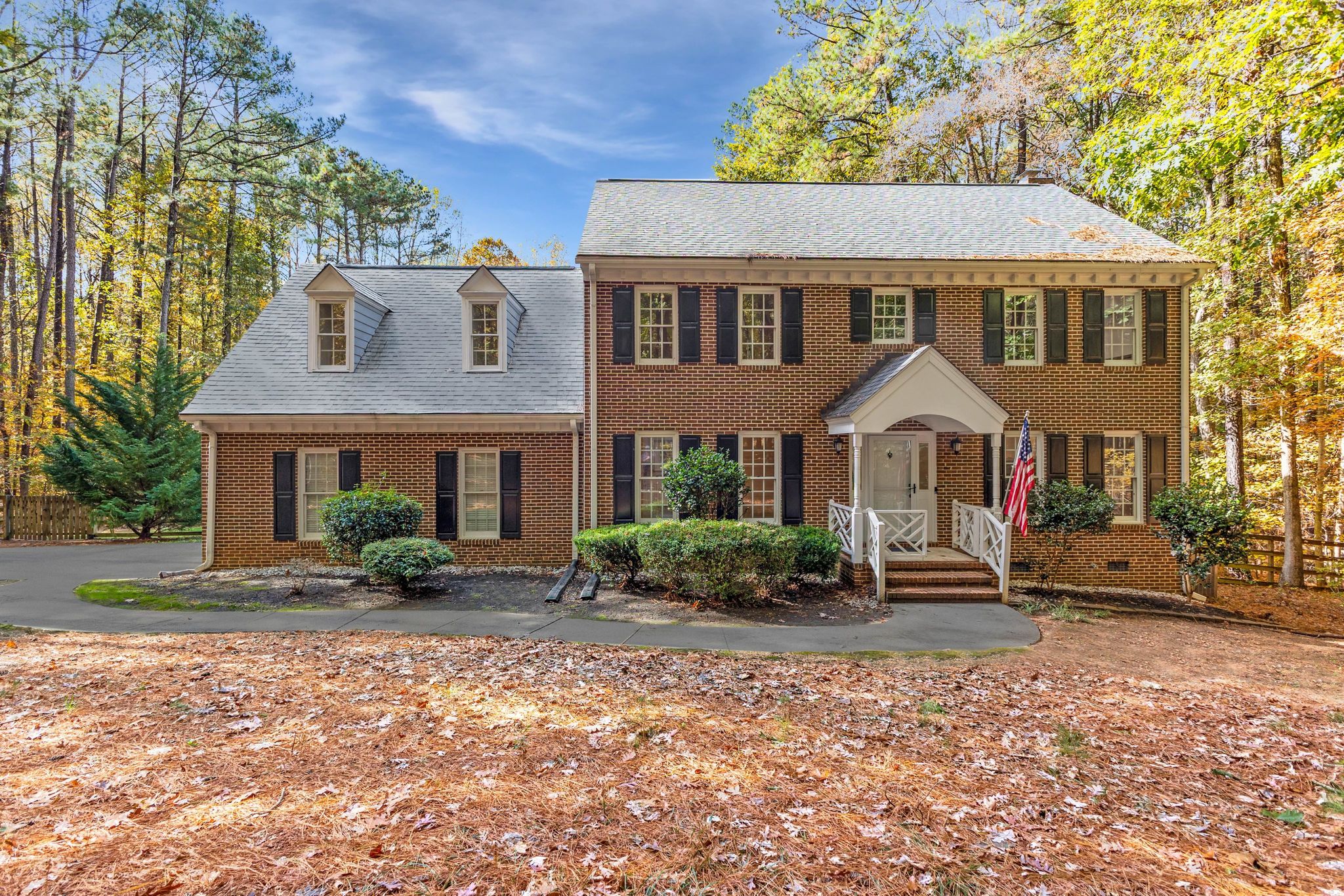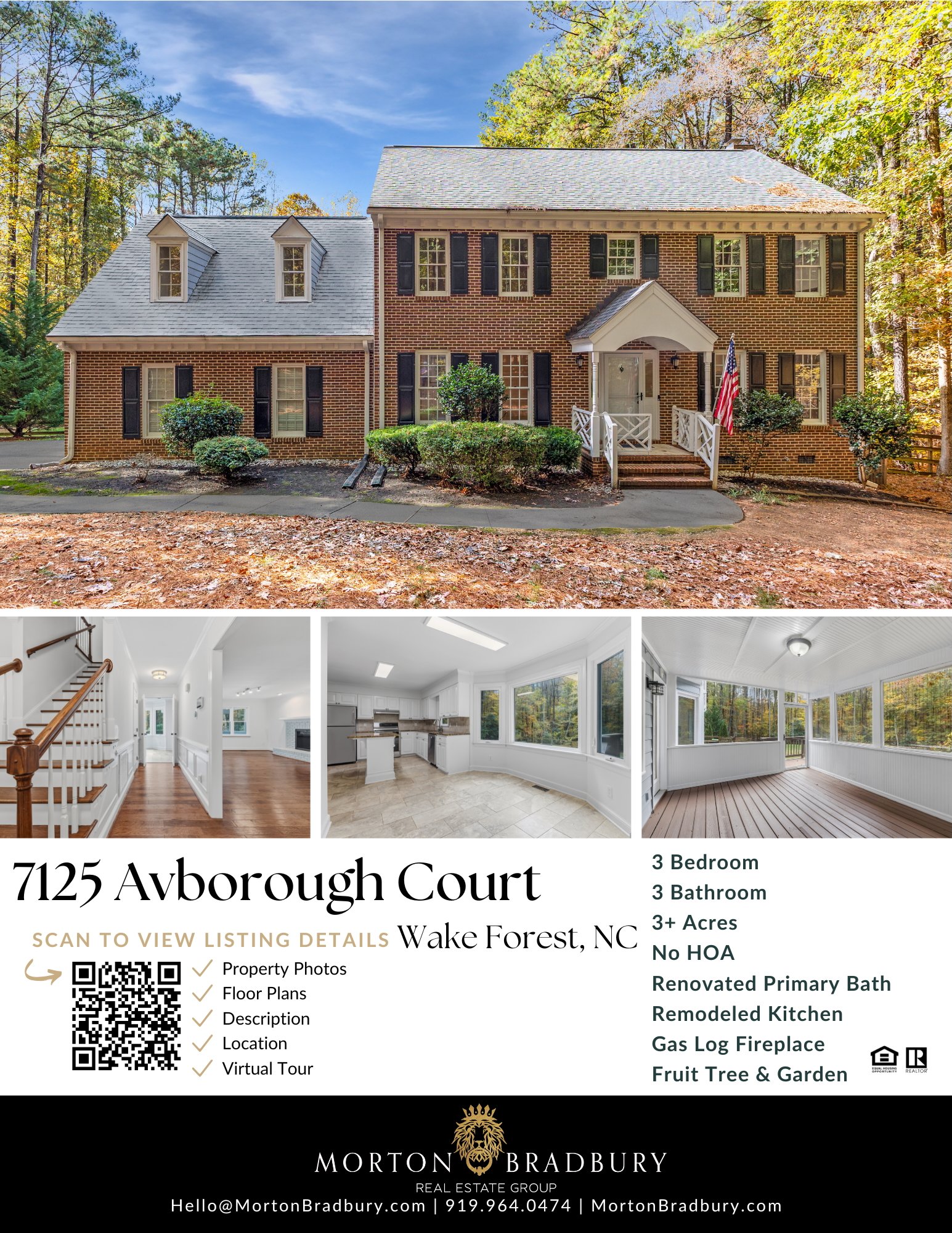 Beautiful brick-front home tucked away on a private, partially fenced 3+ acre corner lot surrounded by hardwoods, a fenced garden, and fruit trees. Enjoy the peaceful sounds of the creek from your screened porch or large patio, all just minutes from Downtown Wake Forest and Wakefield.
